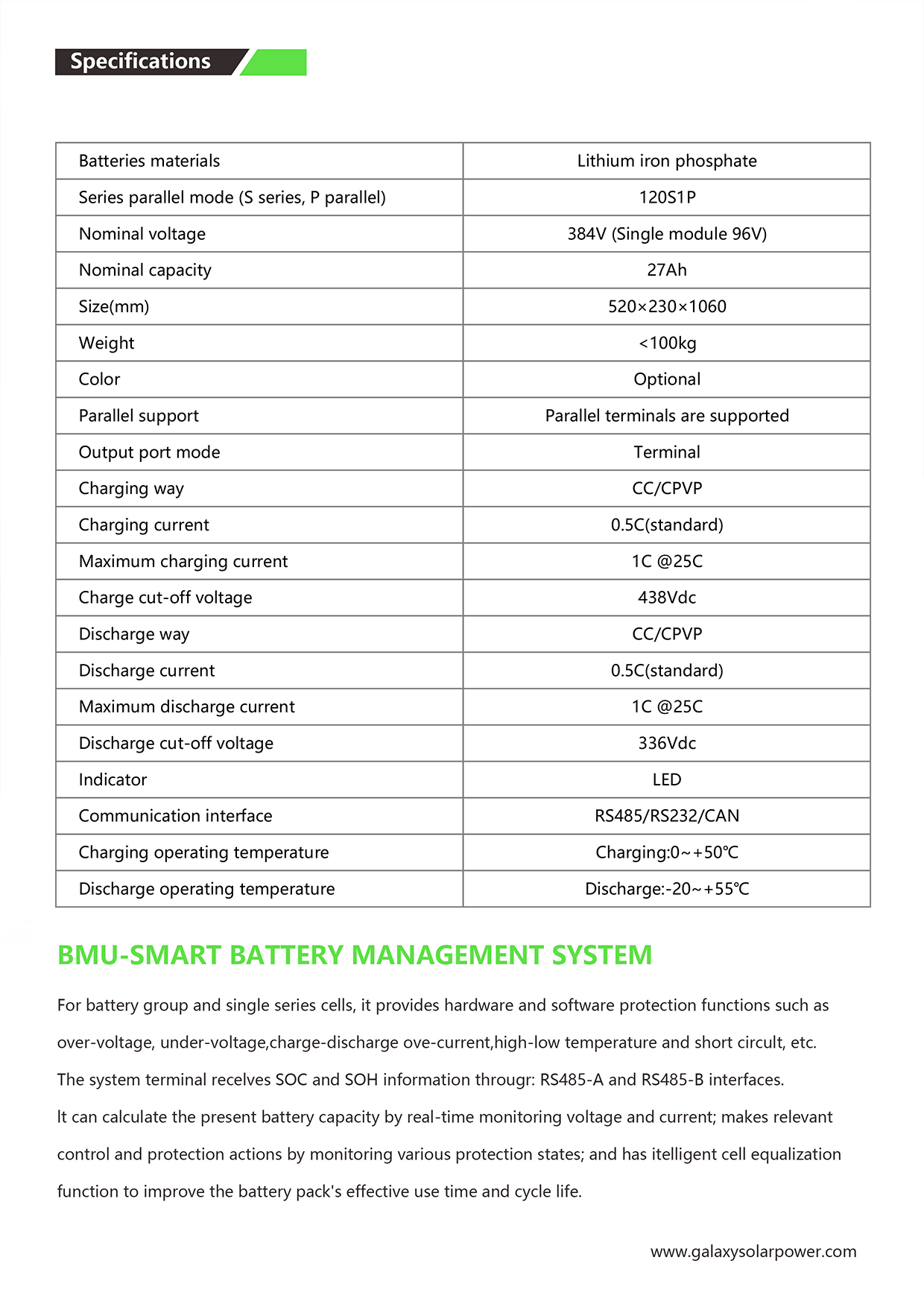 96V-384V High Voltage Stackable LiFePO4 Battery
